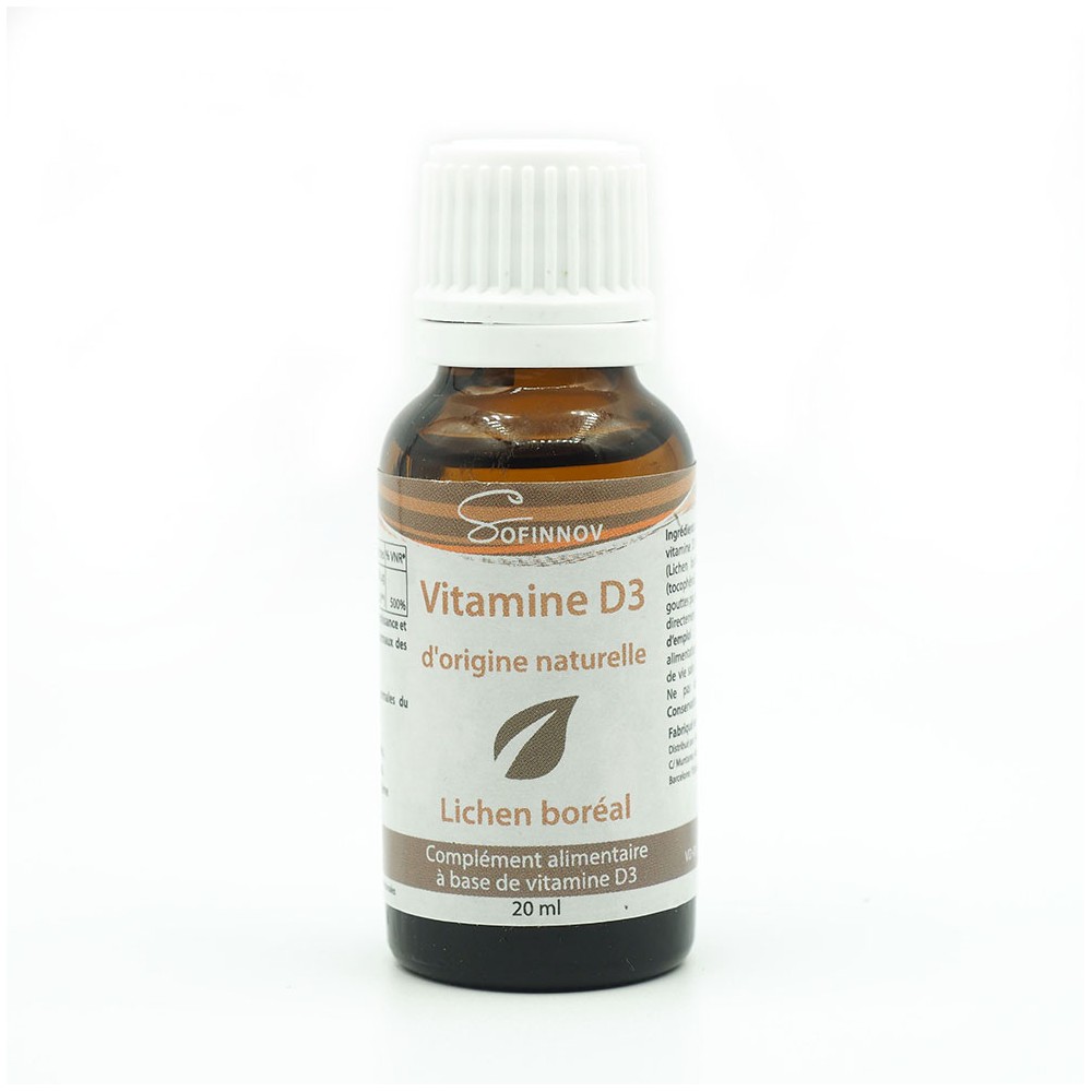 Elle est également nécessaire à une croissance et à un développement osseux normaux des enfants. Sa forme huileuse permet une assimilation optimale. 1 goutte apporte 5 µg soit 200 UI (=Unité Internationale), peut convenir aux besoins de toute la famille. De plus, notre vitamine D3 est naturelle et végétale, issue du Lichen boréal, pour s'adapter à tous les régimes alimentaires.